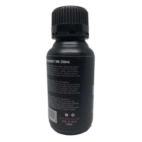 Tinta negra brillante, base alcohol, permanente y ultra-penetrante. Para rellenar mops, squeezers y marcadores. Envase de 250ml.