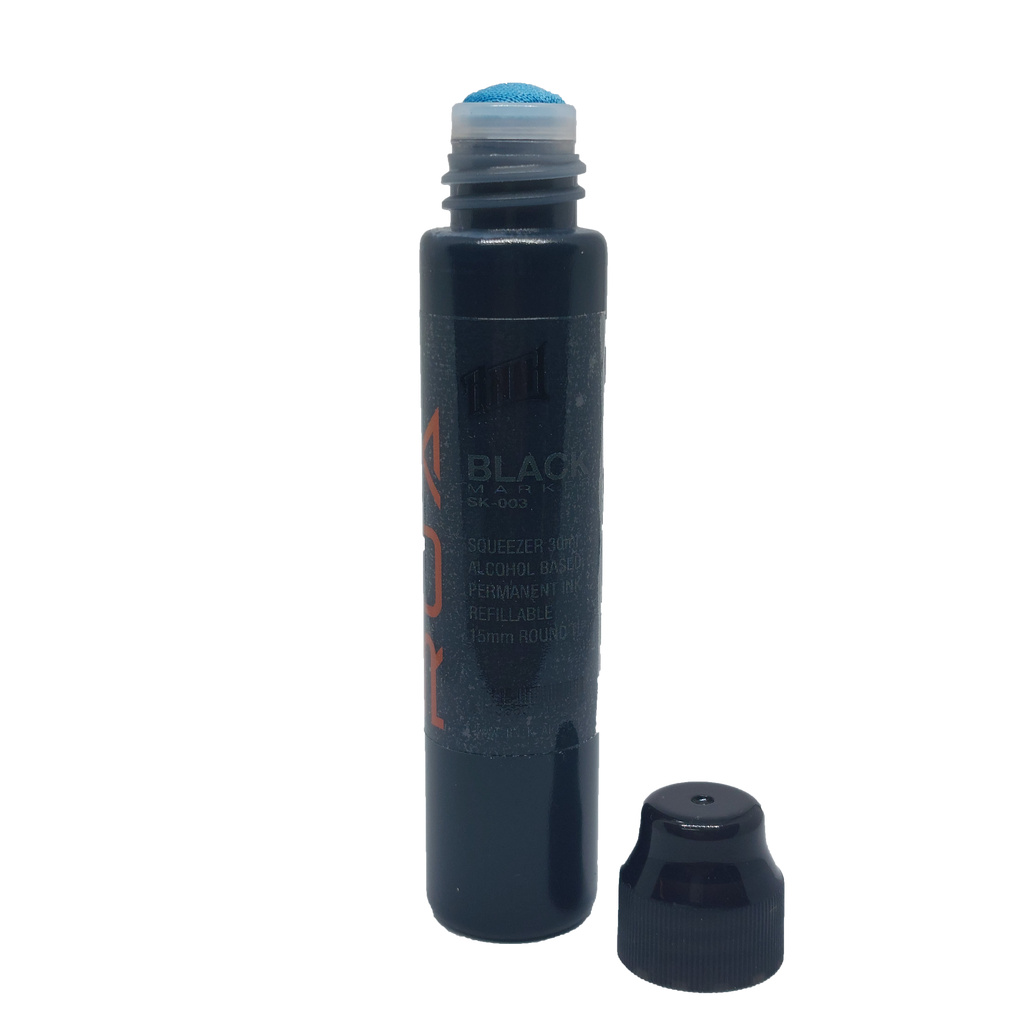 Rotulador lleno de tinta BNIK INK Negra base alcohol, con punta de poliéster 15mm. Recargable y con puntas intercambiables. Control del aporte de tinta a la punta en función de la presión que se aplique sobre el cuerpo del rotulador, lo que permite conseguir trazos únicos y chorreados. Capacidad 30ml.
